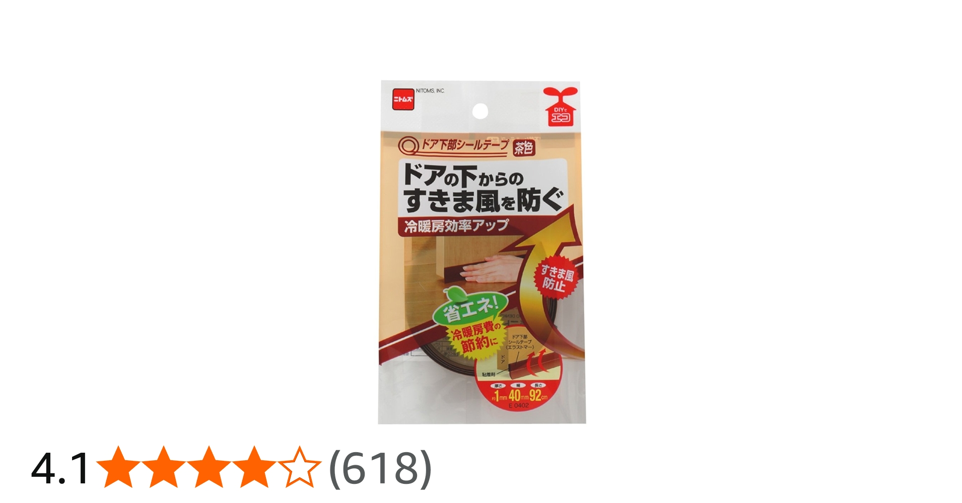 注意点としては、このテープの幅は 40mm で、そのうち約 1cm は “のりしろ”(?) なので、隙間の高さが大きいケースでは足りないことがあります。その場合は、ずらして二重にして貼るか、別のドア下部シールテープ(Amazon)を選んでください。