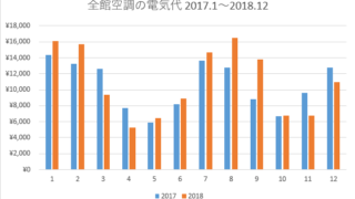 全館空調・エアコン 全館空調の電気代(2018年1月~12月) 2017 年の全館空調(三井ホーム、東芝スマートブリーズ・プラスII)の電気代に引き続き、2 年目となる 2018 年の一年間の電気代も紹介したいと思います。参考までに、近隣の気温データも載せておきます。2018 年の月ごとの電気使用量およ... 2019.02.09 全館空調・エアコン